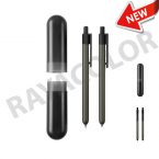 Set de Bolígrafo y lápiz mecánico. Metal. Estuche plástico que contiene un bolígrafo y lápiz mecánico de cuerpo metálico y detalles engomado en el clip y pulsador.