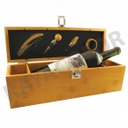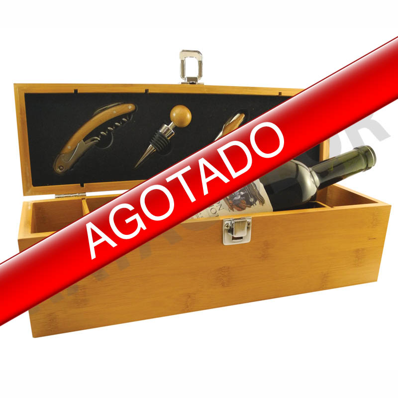 Elegante Caja que incluye Cortagota, Vertedor, Tapón y Sacacorchos. Tabique regulable para botellas chicas.