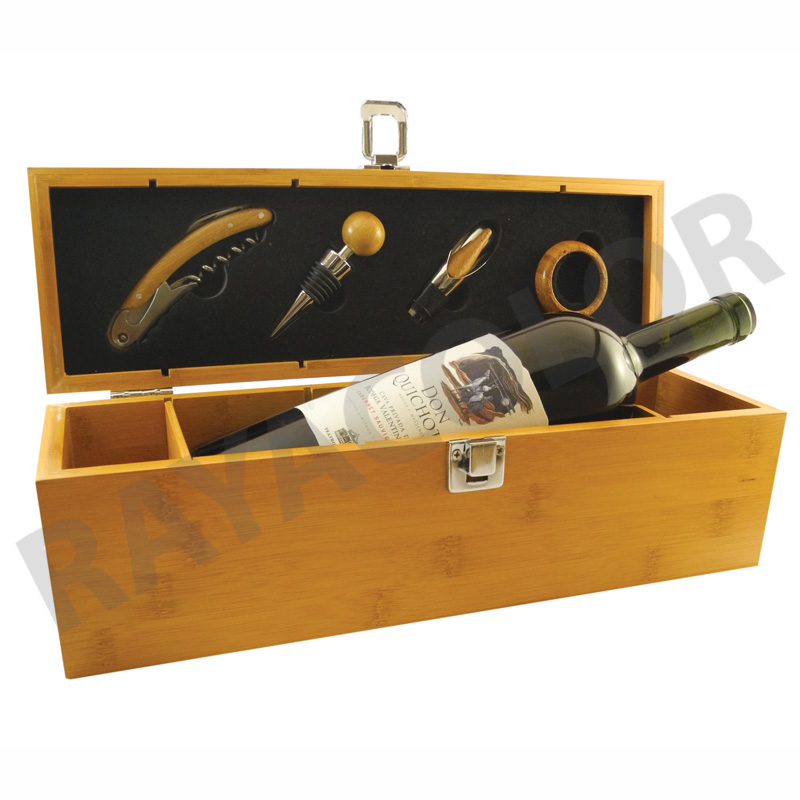 Caja de Madera Bamboo con 4 accesorios de Madera.