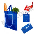 Bolsa Non Woven Cierra, Bolsa posee un bolsillo frontal con vivos blancos alrededor y un cierre de botón.