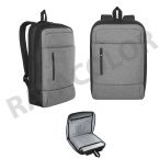 Polyester. Mochila con amplia apertura y dos bolsillos en su exterior. En el interior cuenta con espacio porta laptop, porta bolígrafos, cuatro bolsillos organizadores y un bolsillo con cierre. Espalda acolchonada con red que permite la ventilación y cuenta con pequeño bolsillo con cierre. Correas regulables con red que permite la ventilación. Cierres con herrajes metálicos.