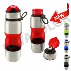Botella deportiva modelo "Trend", de Acero Inoxidable con plástico rígido traslúcido. Para líquidos fríos (no térmico). Capacidad: 650 cc. Disponible en color Azul , Rojo, Verde , Gris