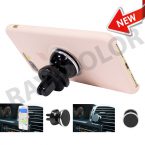 Soporte magnético para celular. El adaptador se puede incorporar a la rejilla del aire acondicionado del auto y se adapta a cualquier tamaño. El agarre del celular es por medio de imán, sólo se debe colocar una placa de metal en el celular. En la placa de metal es donde se aplica el logo.
